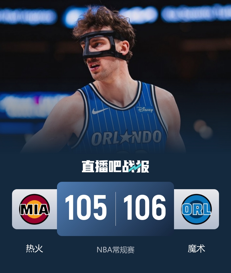 魔术主场险胜热火 小瓦32+5 贝恩16中2 阿德巴约24+15&丢绝杀
